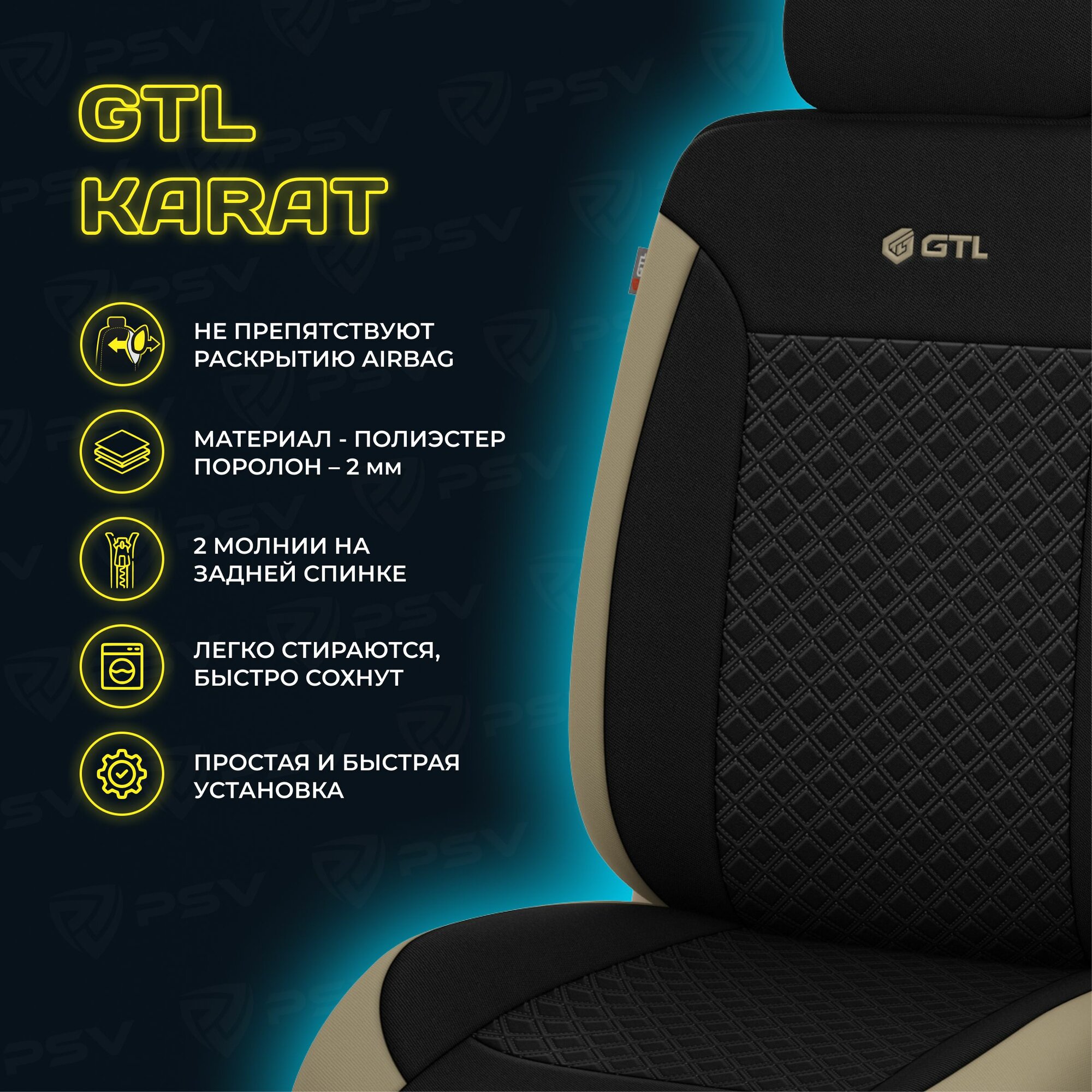 Чехлы в машину универсальные GTL Karat (Черный), полиэстер , на весь салон