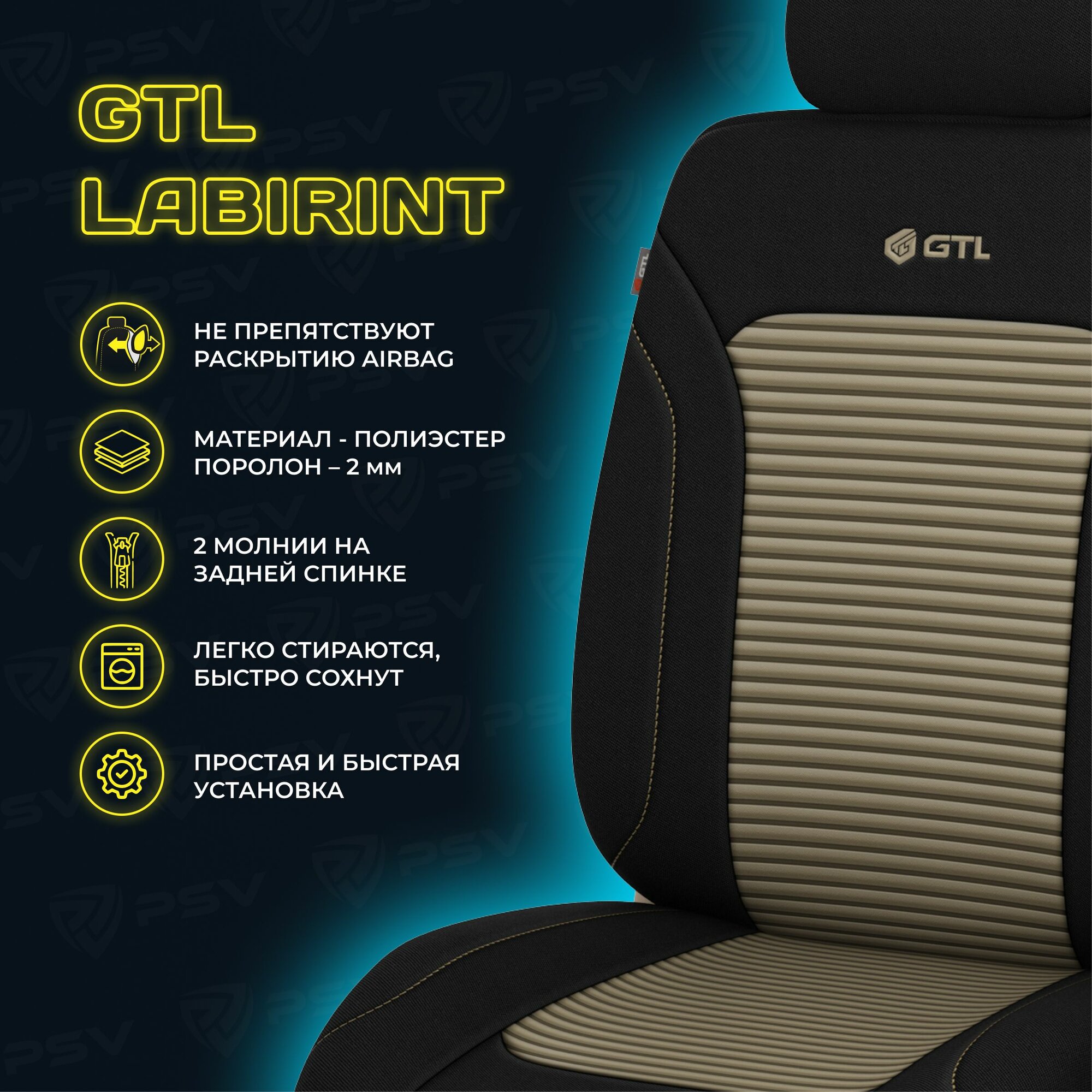 СохранитьЧехлы в машину универсальные GTL Labirint (Бежевый), полиэстер , на весь салон интересное:
