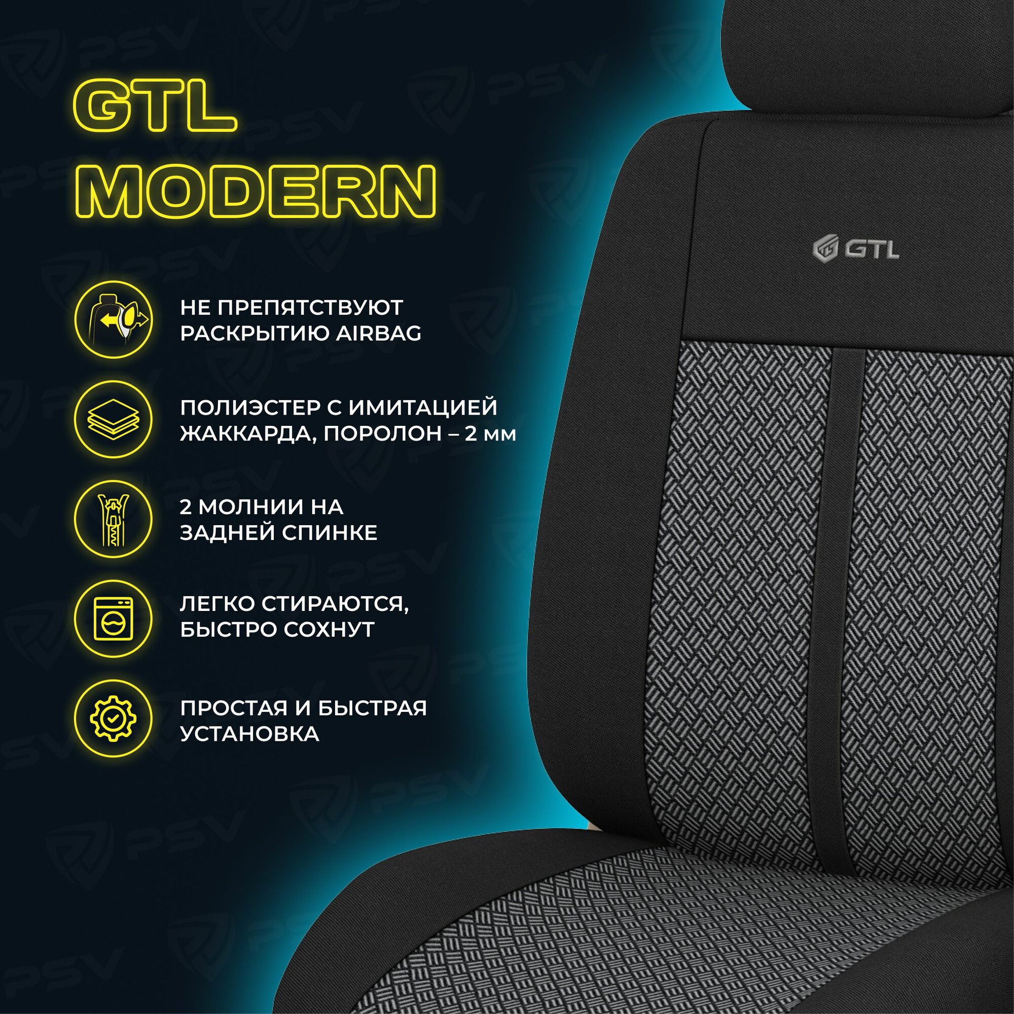 Купить Чехлы в машину универсальные GTL Modern (Черный), полиэстер, комплект на весь салон