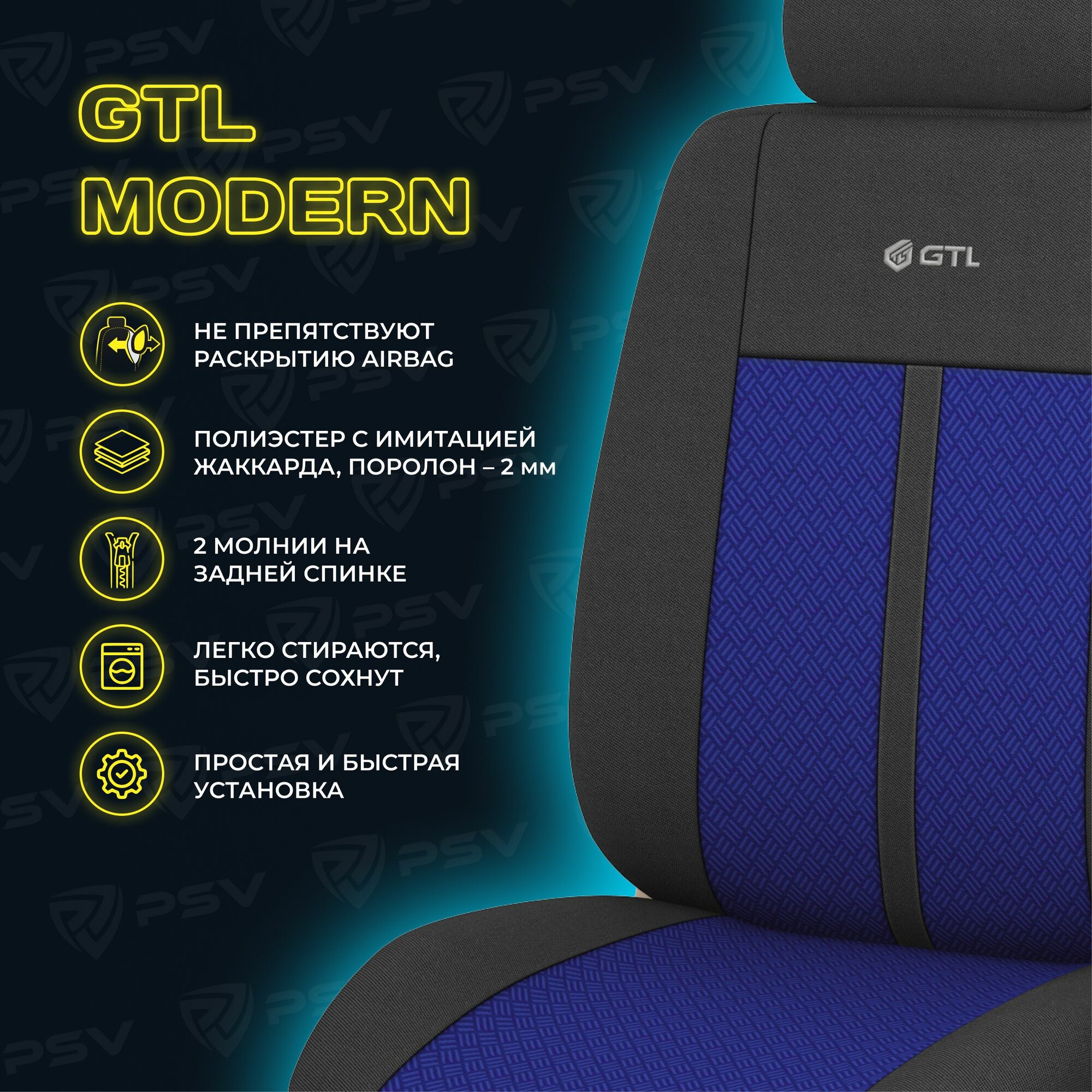 Купить Чехлы в машину универсальные GTL Modern (Синий), полиэстер, комплект на весь салон