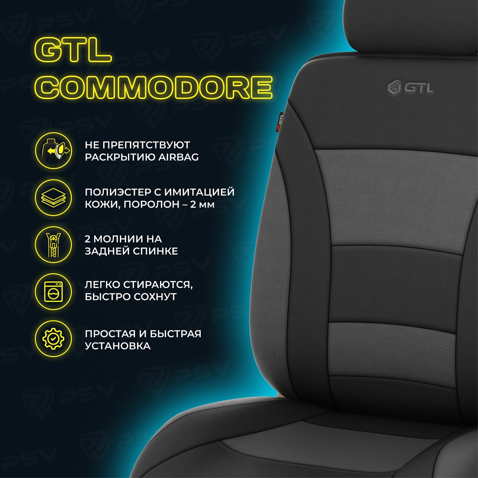Купить Чехлы в машину универсальные GTL Commodore (Графит), полиэстер с имитацией кожи, комплект на весь салон