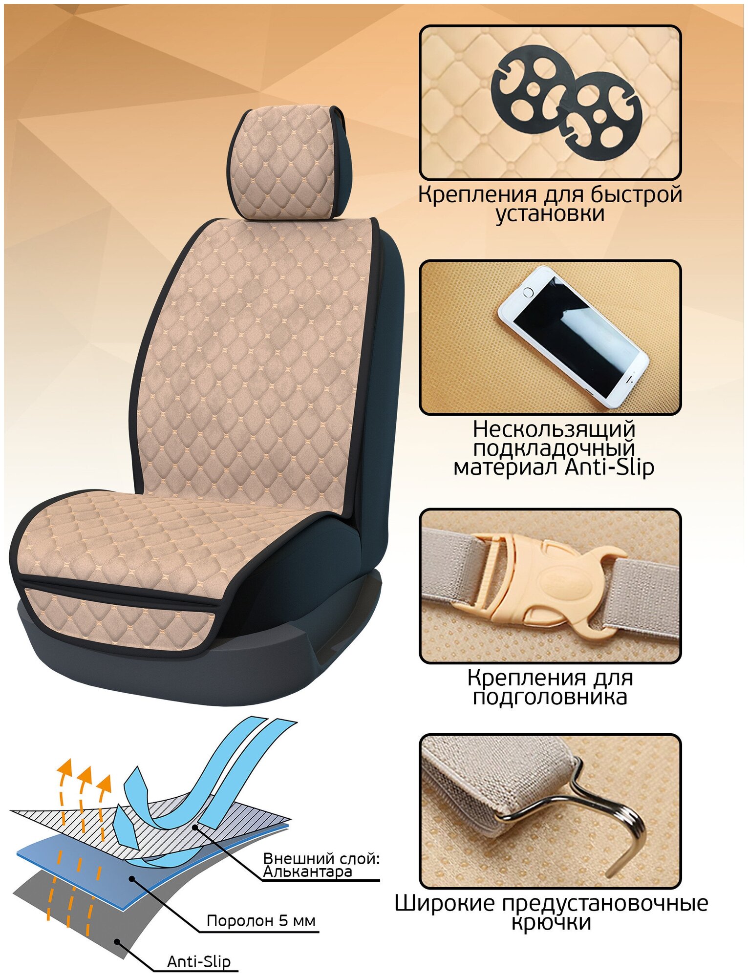 Накидка универсальная BILEZA из алькантары на автомобильное сиденье бежевая интересное: