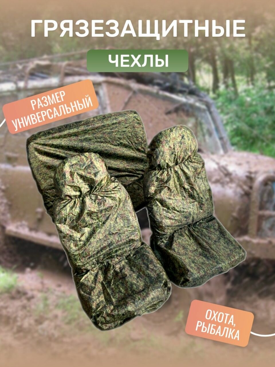 Грязезащитные чехлы на передние сиденья (2 шт + мешок) цвет пиксель с утяжкой