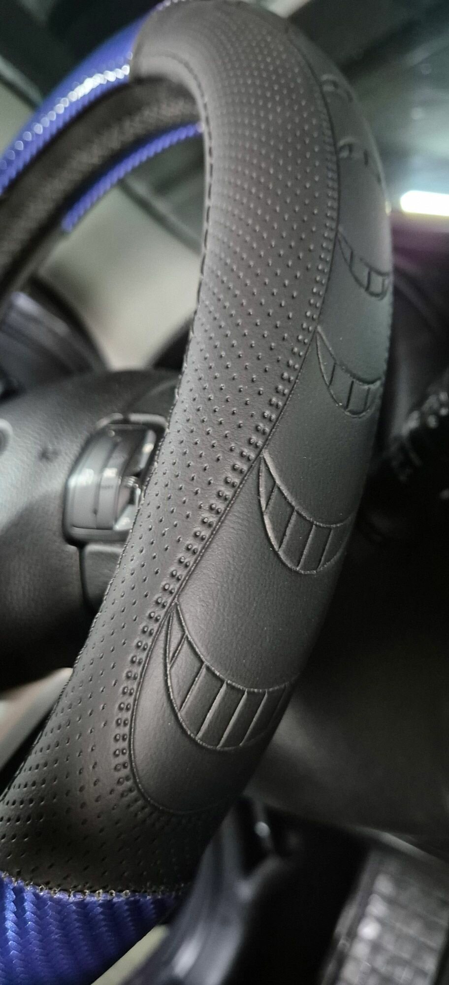 Оплетка, чехол (накидка) на руль Ниссан Патрол (2019 - 2024) внедорожник 5 дверей / Nissan Patrol, Экокожа, Черный и синий интересное:
