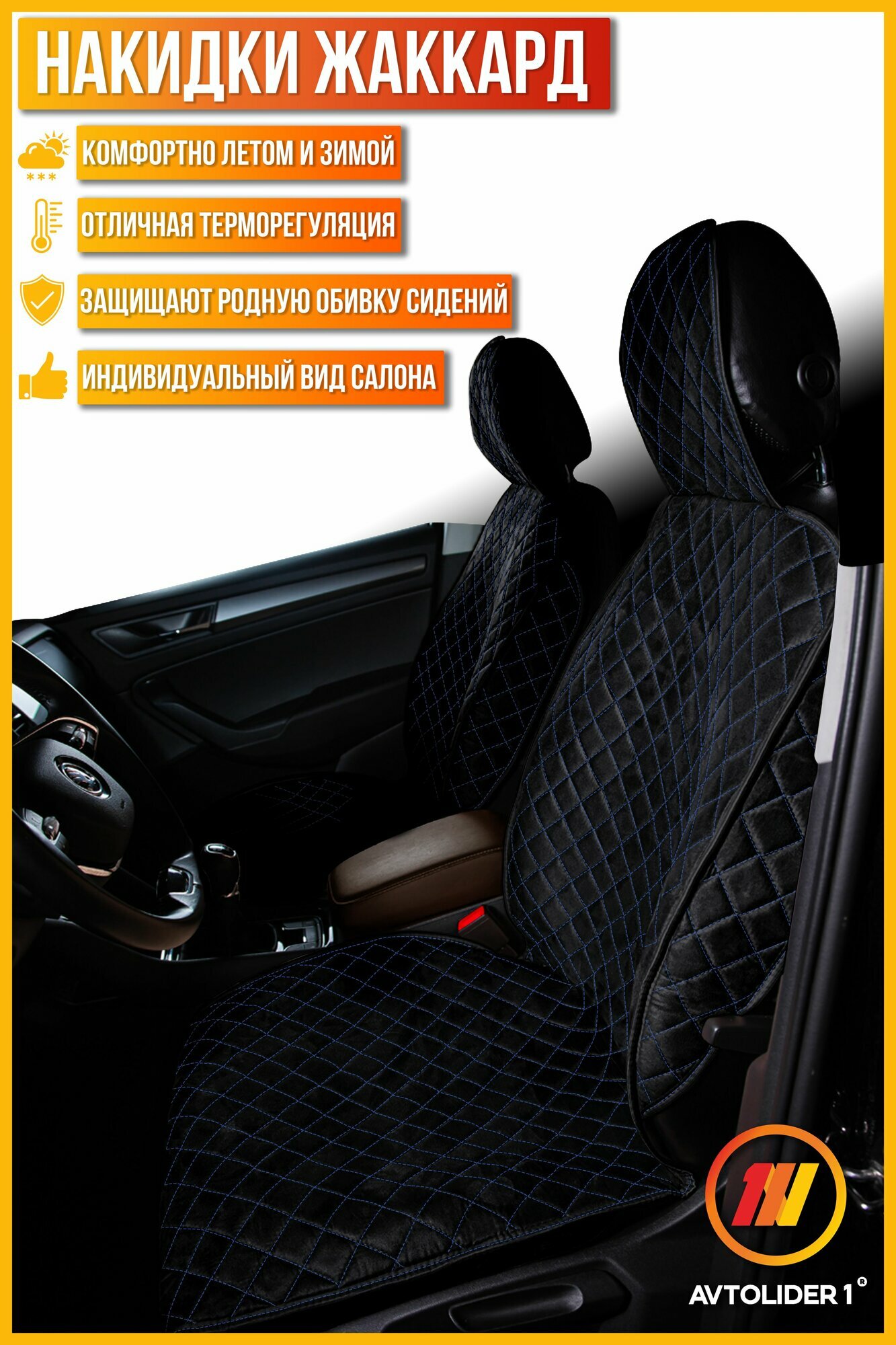 Накидка "Жаккард" 2шт. на переднее сиденье, стандарт Чёрная с синей нитью для Мазда Бт50 (Mazda Bt-50) интересное: