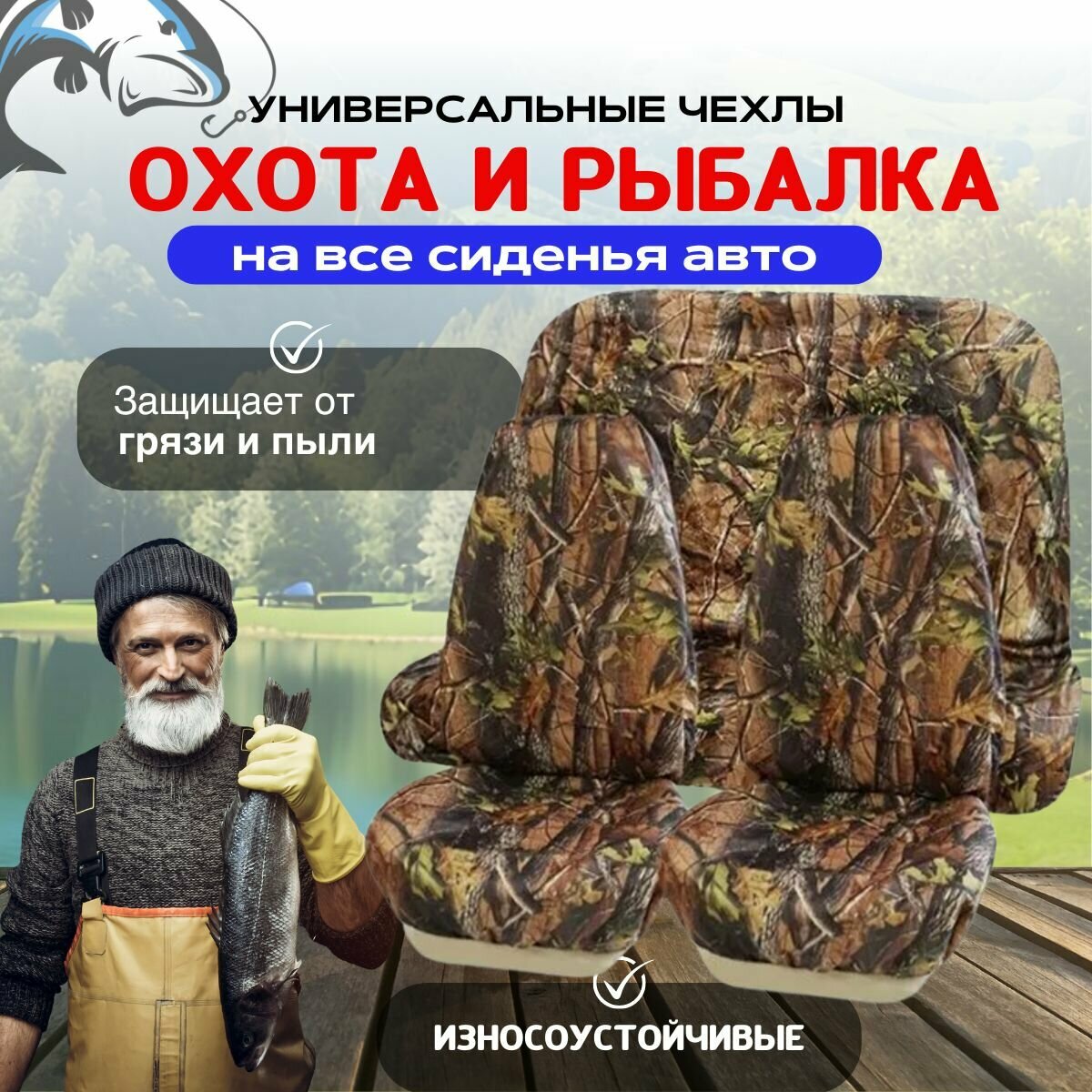 Чехлы, накидки для Мазда 5 (2005 - 2007) компактвэн / Mazda 5 на весь салон для охоты и рыбалки, текстиль, камуфляж интересное: