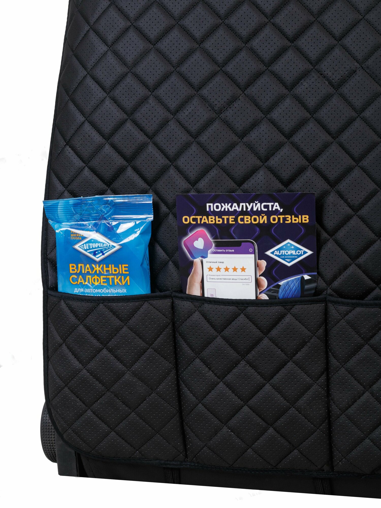 Купить Накидка защитная на спинку автомобильного сиденья (органайзер) на Шевроле Круз (2012 - 2016) универсал 5 дверей / Chevrolet Cruze, Экокожа (ромб), Черный