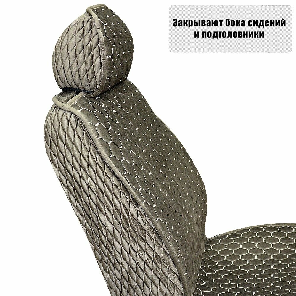 Накидки-чехлы для Ауди А5 (2016 - 2020) купе / Audi A5 на передние сиденья Luxe Soty, Велюр, Серый.