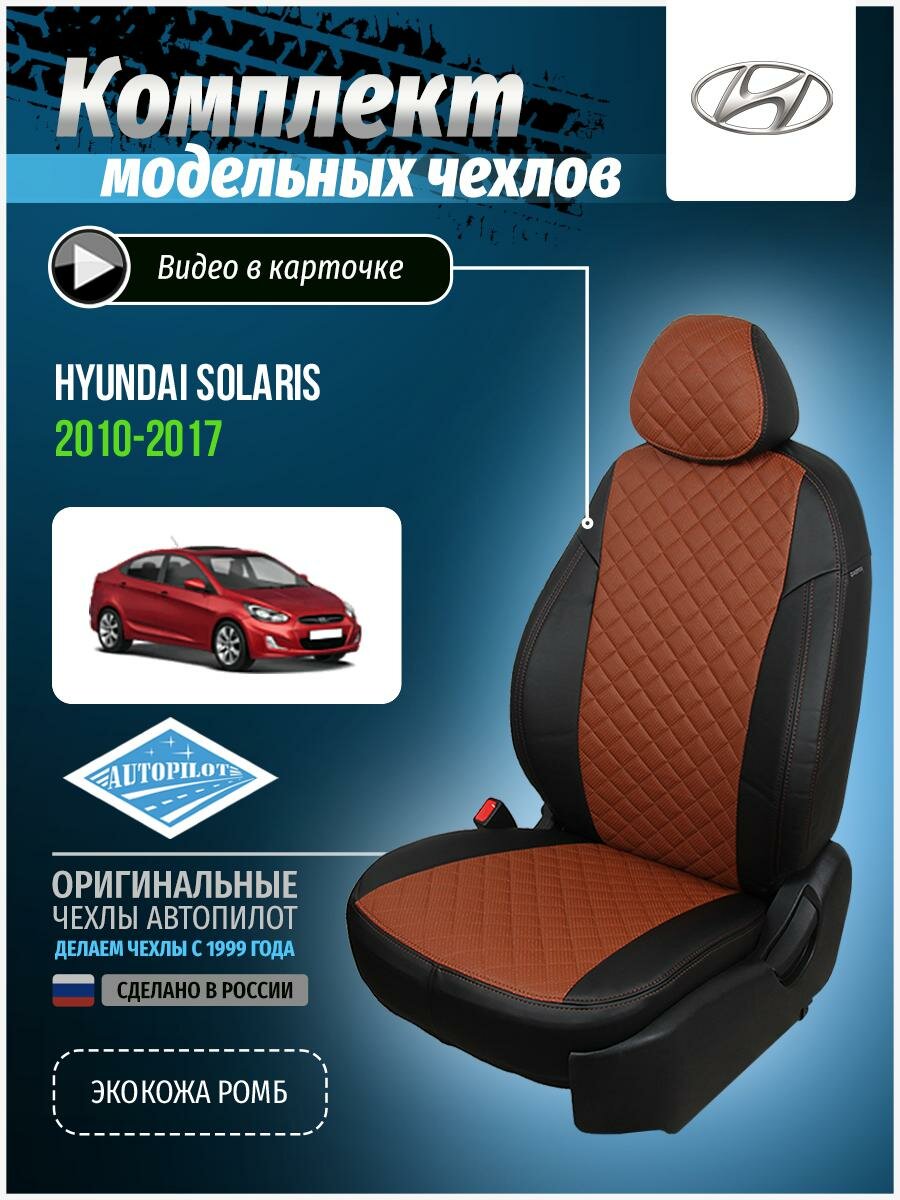 Купить Комплект чехлов Автопилот Ромб Hyundai Solaris I Sd / KIA Rio III Sd (40/60) с 10-17г. Черный + Коричневый