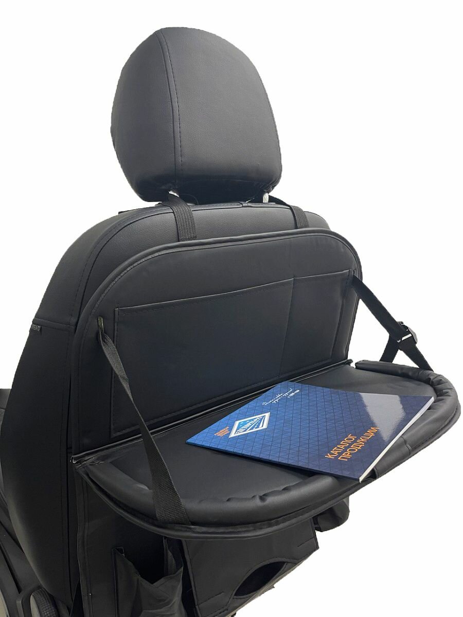 Накидка защитная (органайзер) с откидным столиком на спинку автомобильного сиденья на Mazda BT-50 (2006-2012), Экокожа, Черный интересное: