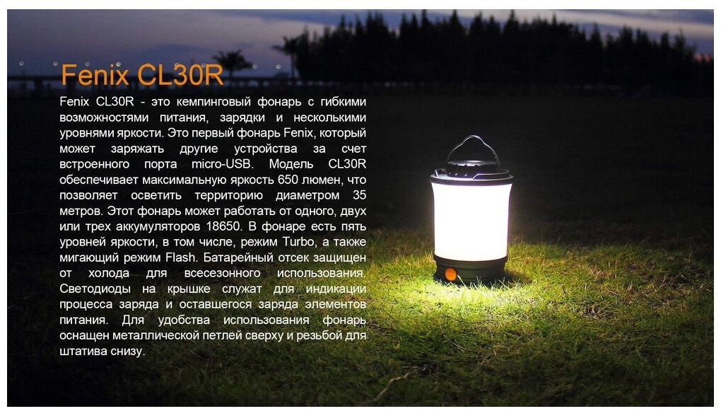 Фонарь Кемпинговый 650 Люмен CL30R от Fenix