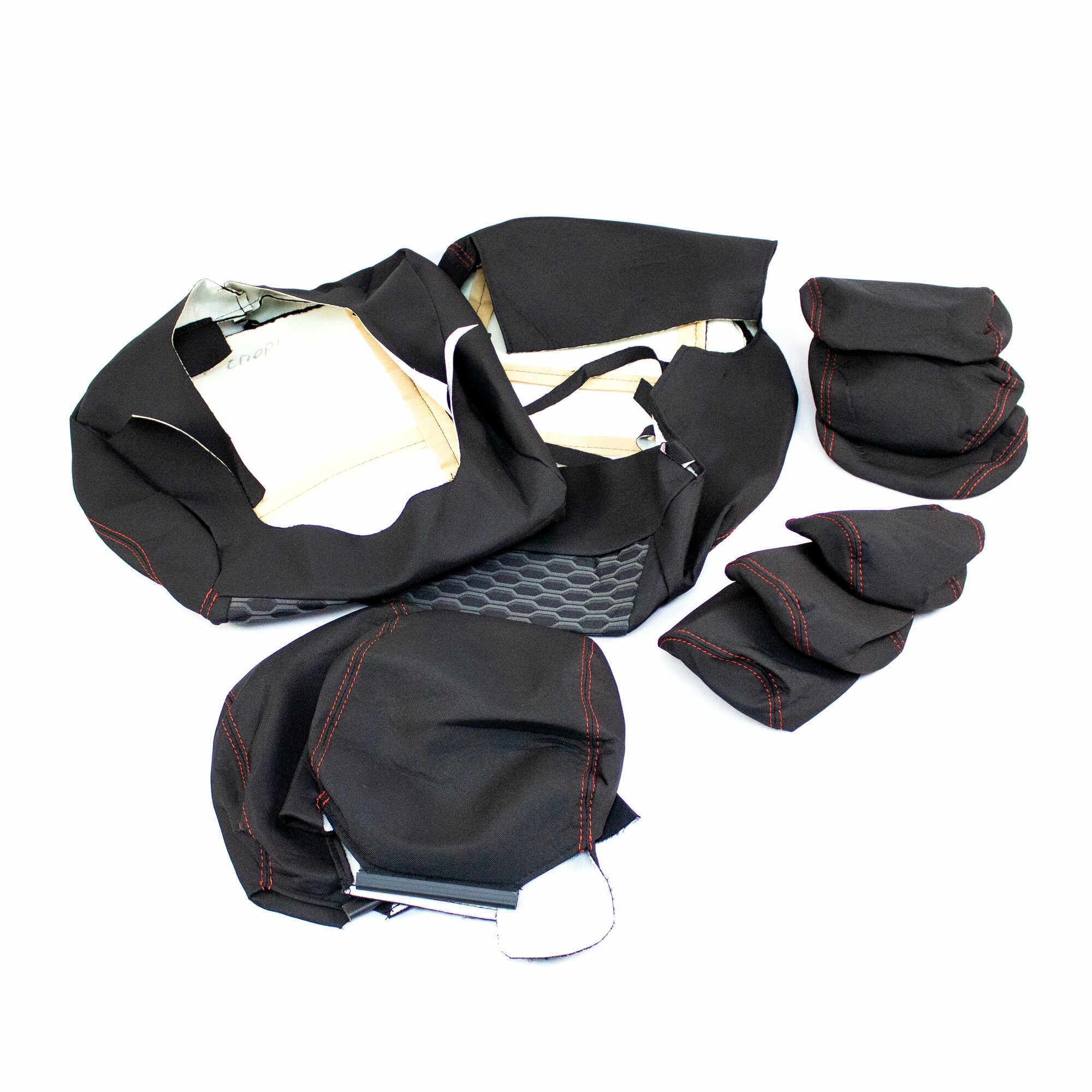 Комплект каркасных чехлов 5D CarFashion Consul Plus, чёрные, отстрочка серая