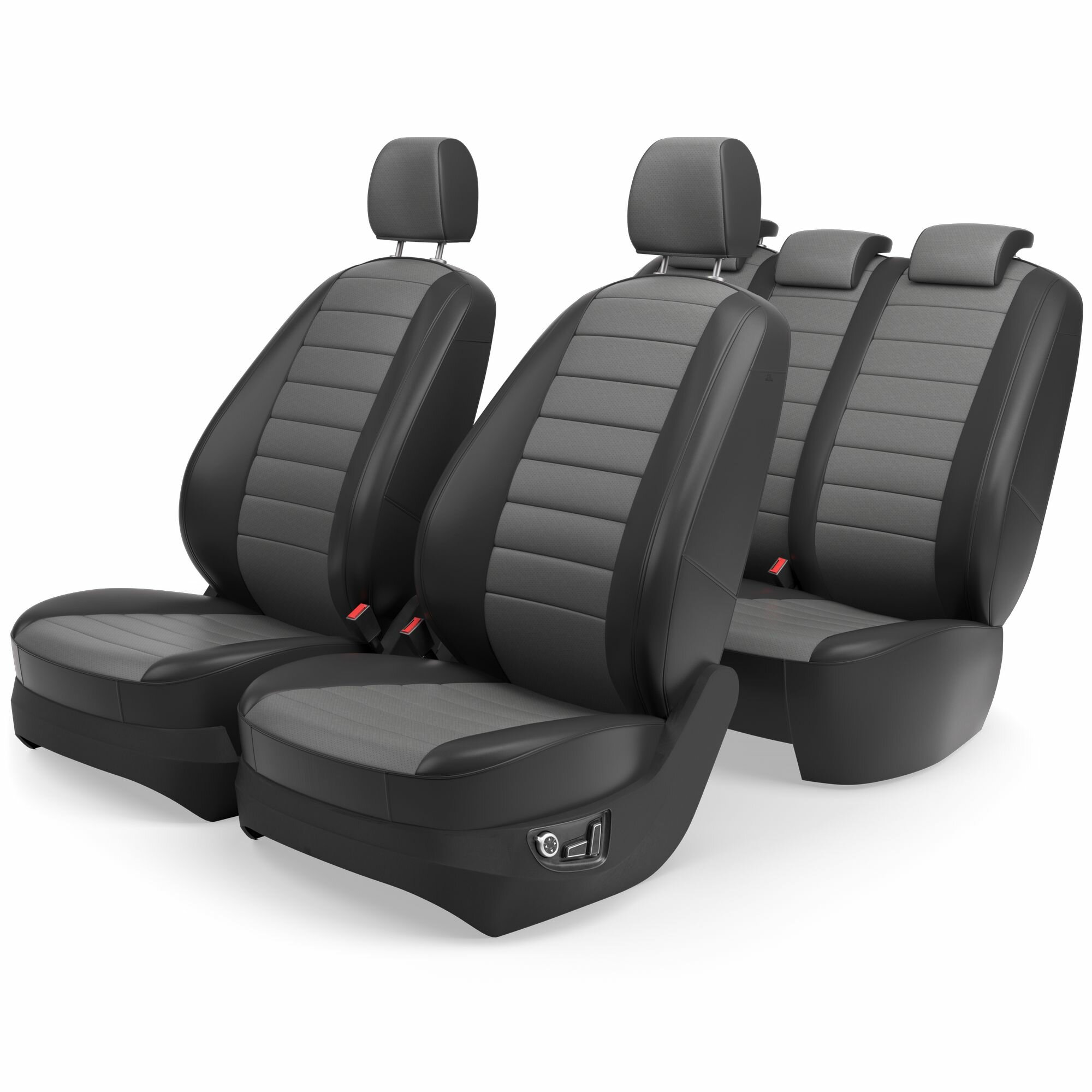 Комплект каркасных чехлов 5D CarFashion Consul Plus, чёрные, отстрочка серая