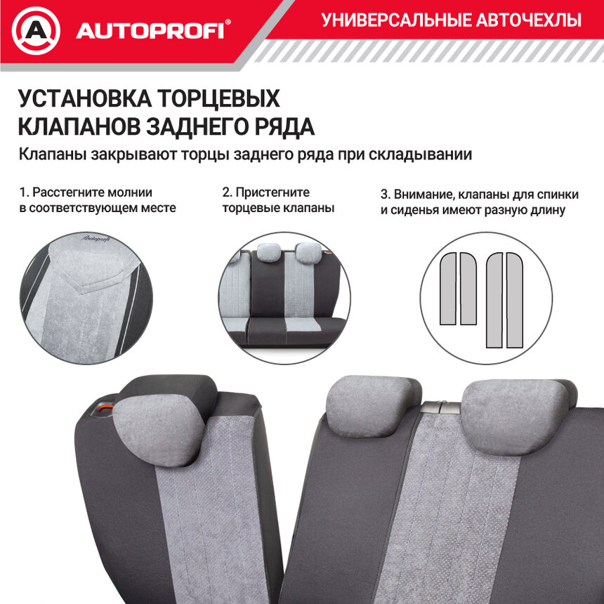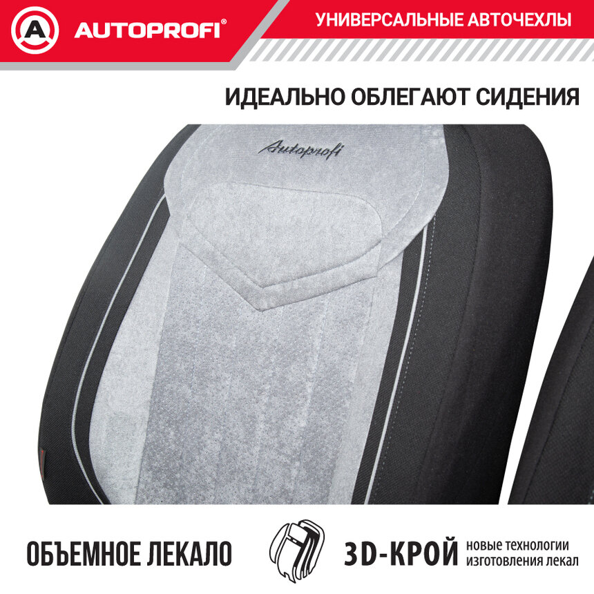 Купить Чехлы Autoprofi Signature 15 пр. велюр новое лекало 3D крой 5 п/г AirBag черно-серые