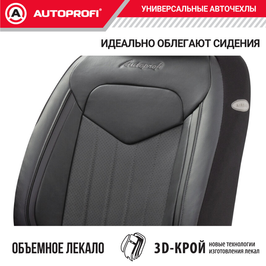 Купить Чехлы Autoprofi Signature 15 пр. экокожа новое лекало 3D крой 5 п/г AirBag черные