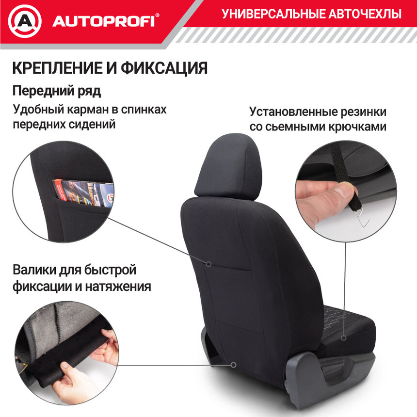 Чехлы Autoprofi Signature 15 пр. экокожа новое лекало 3D крой 5 п/г AirBag черные интересное: