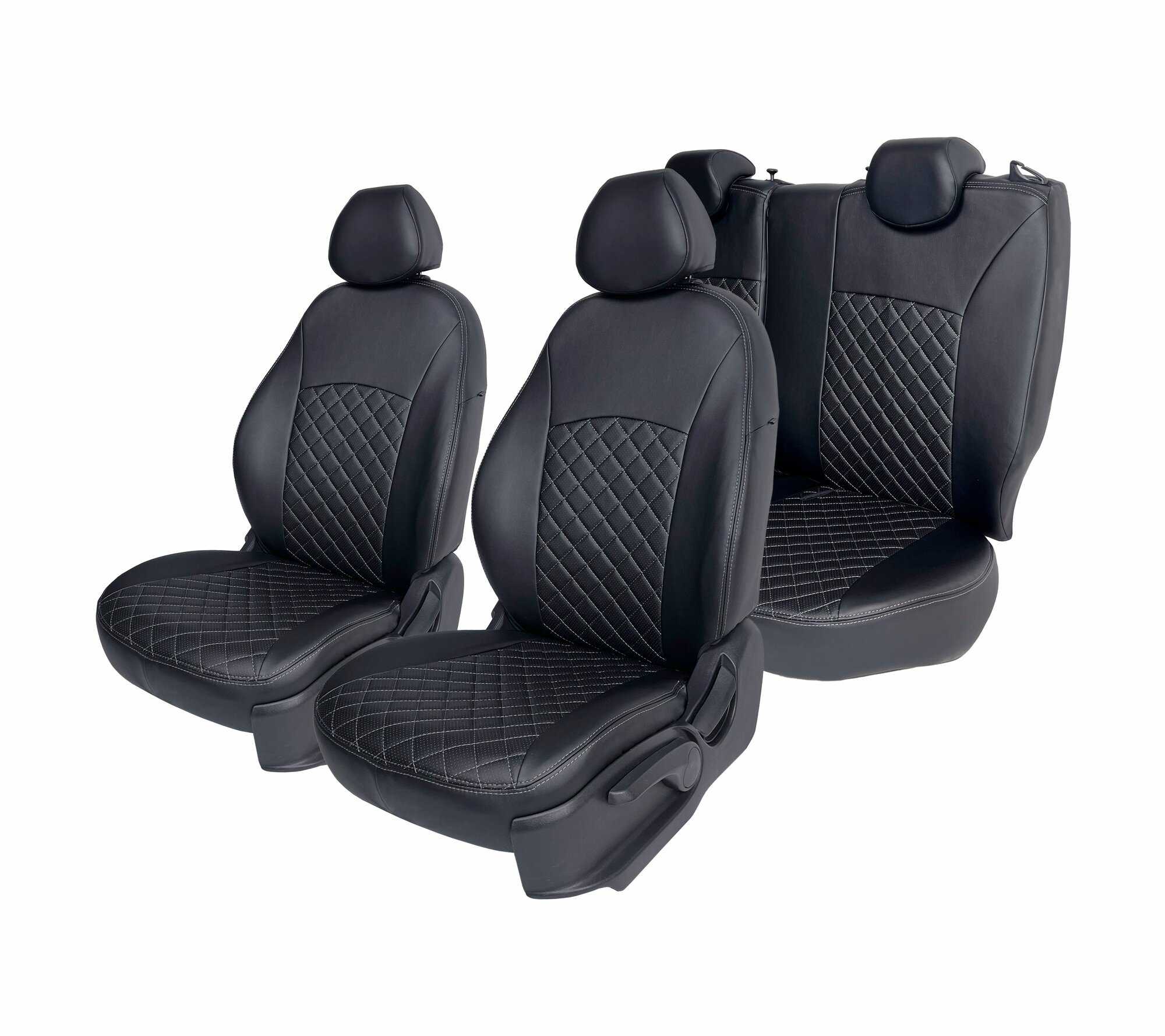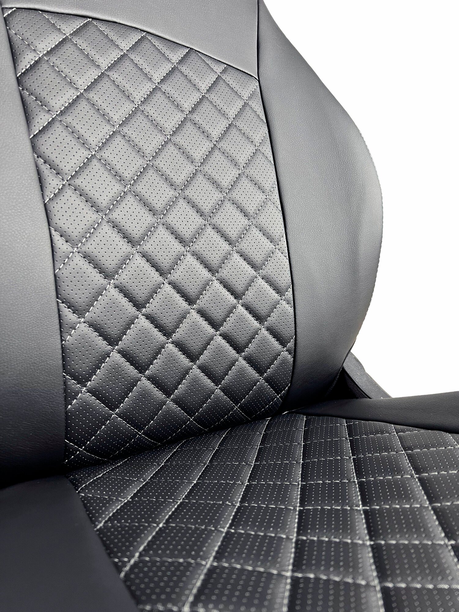 Комплект каркасных чехлов 5D CarFashion Consul Plus, чёрные, отстрочка серая
