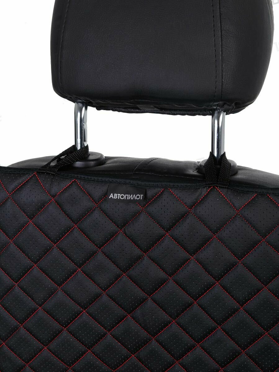 Купить Накидка защитная на спинку автомобильного сиденья (органайзер) на Тойота Рав4 (1994 - 2000) внедорожник 3 двери / Toyota RAV4, Экокожа (ромб), Черный с красной строчкой