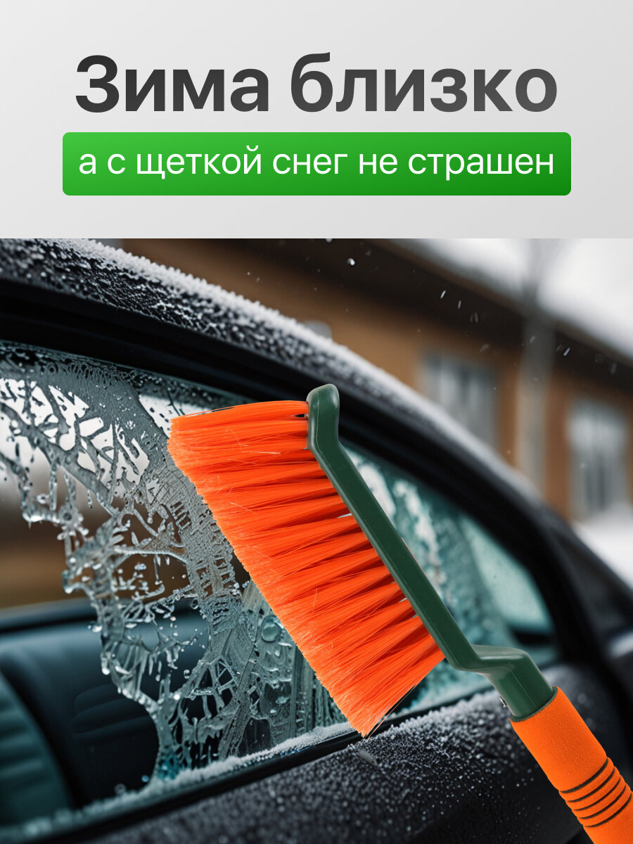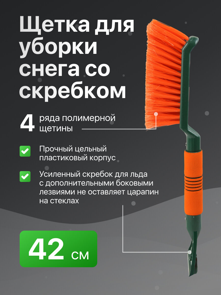 Купить Щетка для снега cо скребком "Li-Sa" поролоновая ручка, оранжево-зеленая (42см).