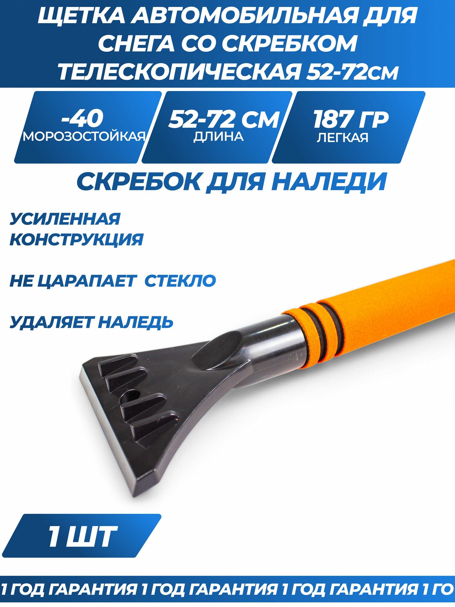 Купить Щетка автомобильная для снега, со скребком, 52-72 см, оранжевая