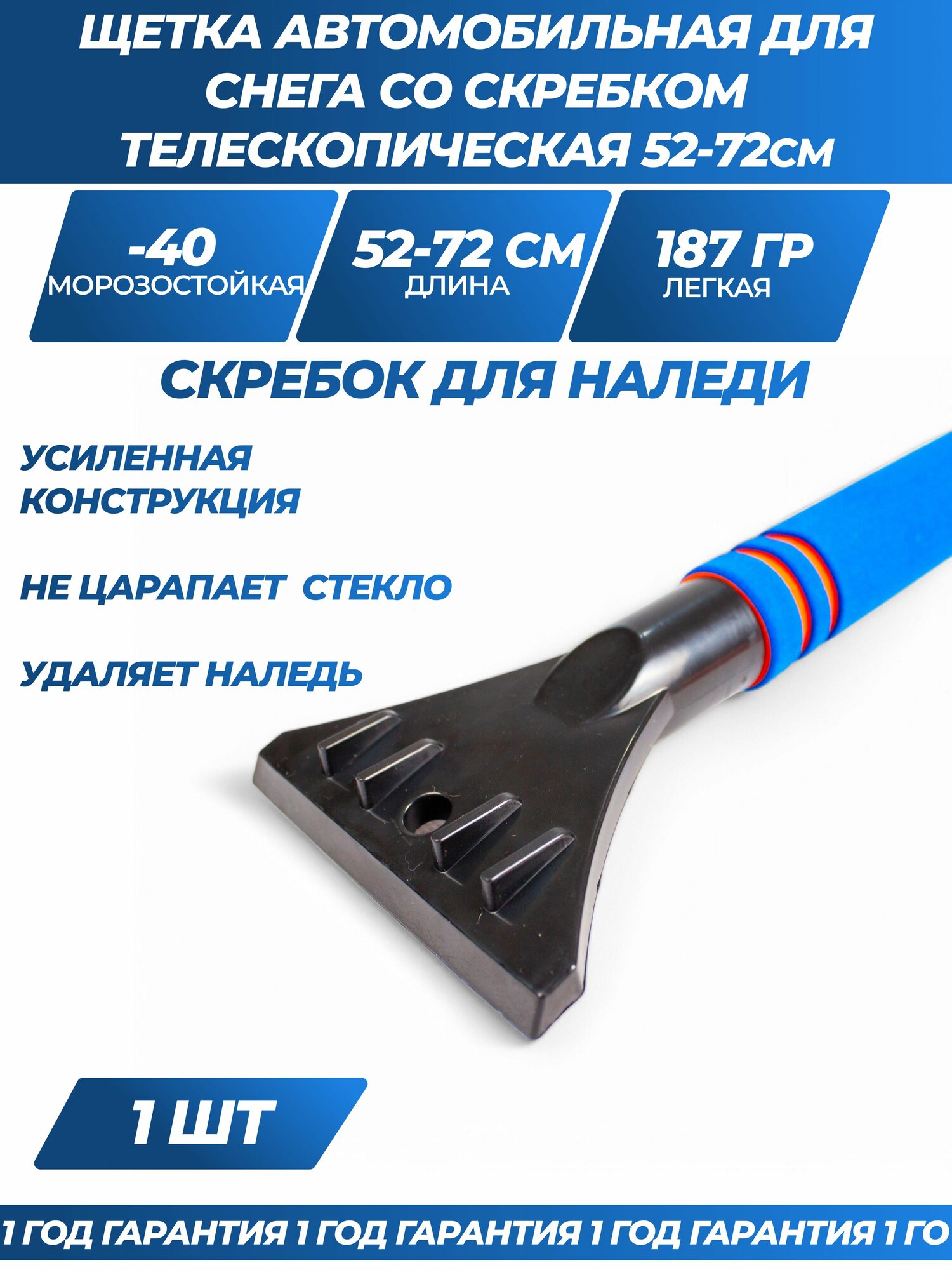 Щетка автомобильная для снега, со скребком, 52-72 см, цвет синий интересное: