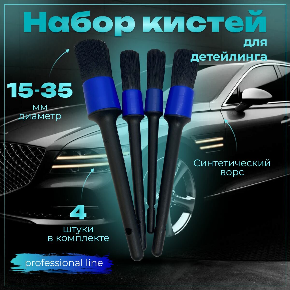 Набор кистей разного размера для детейлинга и мытья автомобиля интересное: