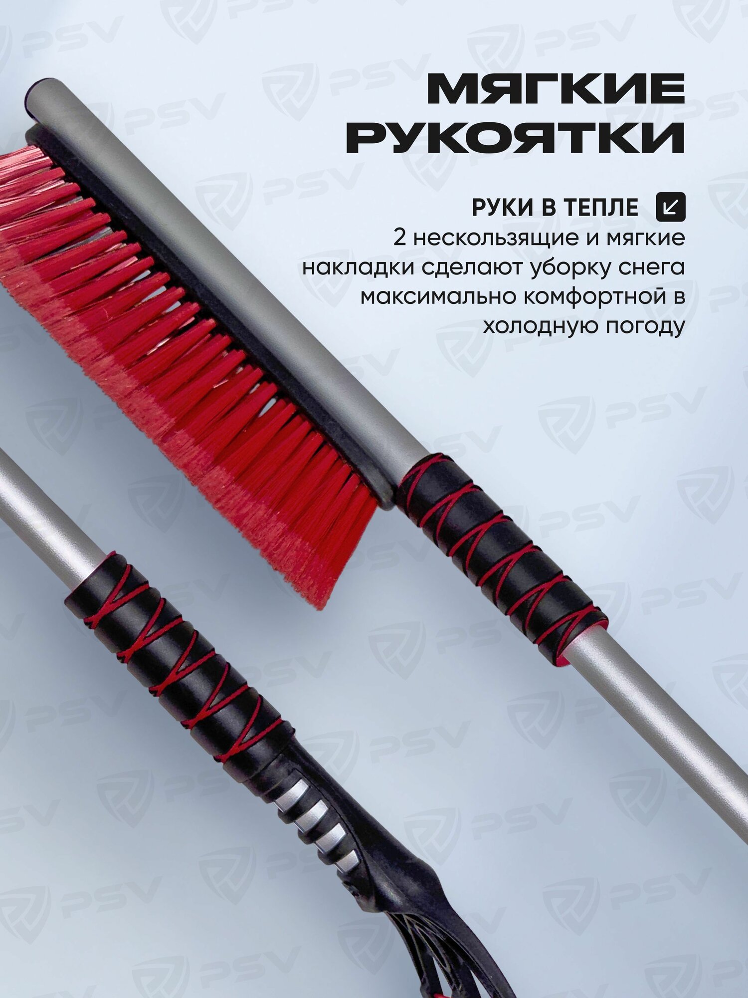 Щетка автомобильная для снега со скребком PSV Zima 66 с мягкой ручкой и распушенной щетиной (66 см)