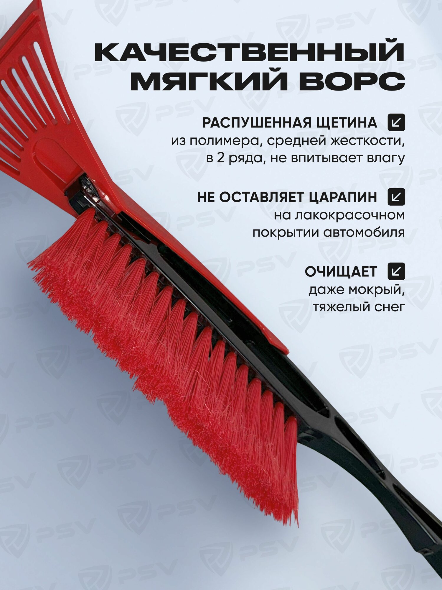 Щетка автомобильная для снега со скребком PSV Zima 66 с мягкой ручкой и распушенной щетиной (66 см)