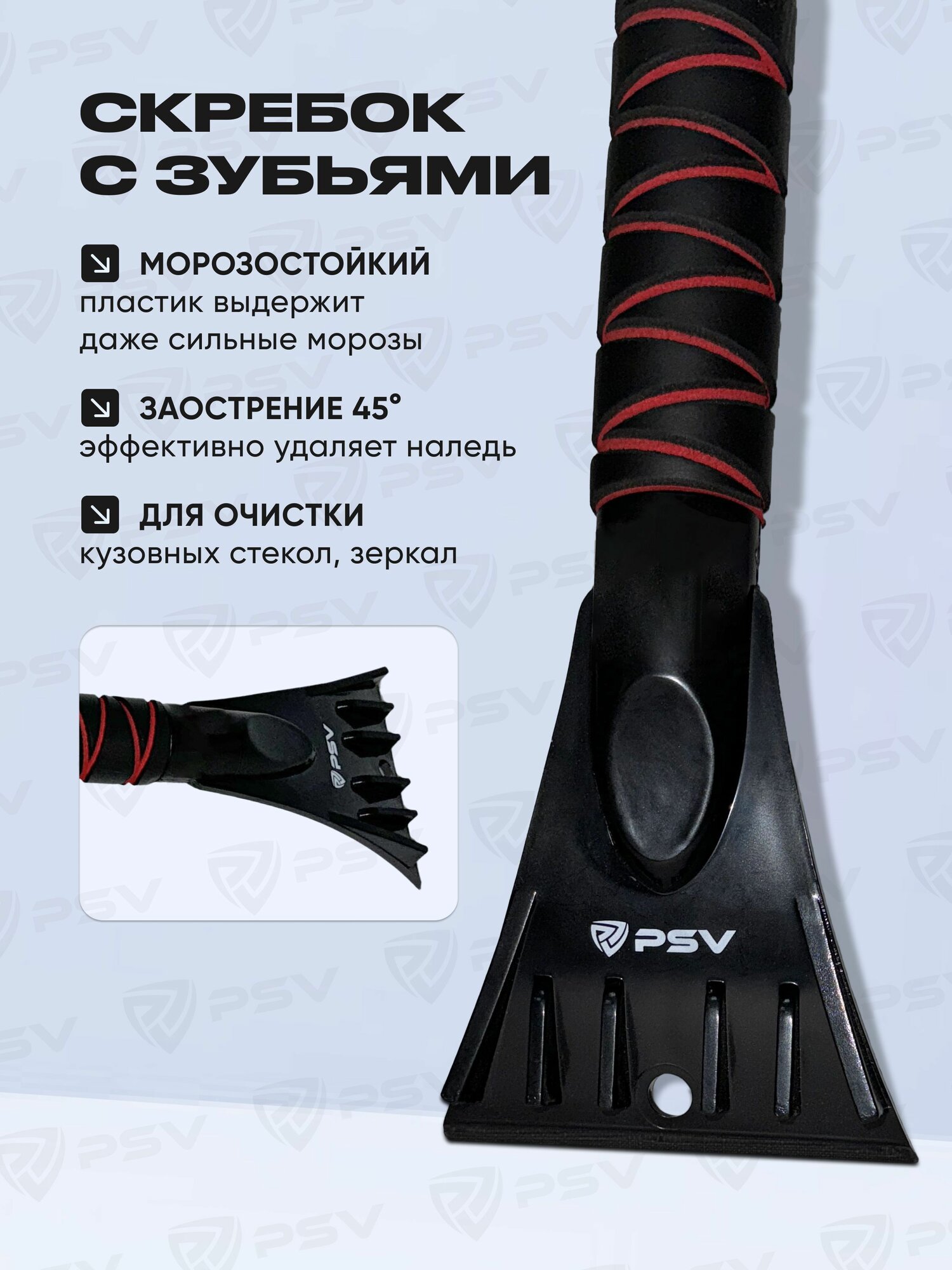 Щетка автомобильная для снега со скребком PSV Zima 61 с мягкой ручкой и распушенной щетиной (61 см)