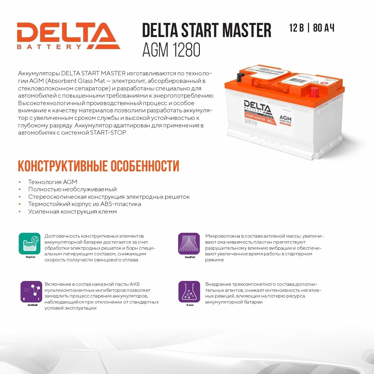 Аккумулятор DELTA START MASTER 80 Ah AGM интересное:
