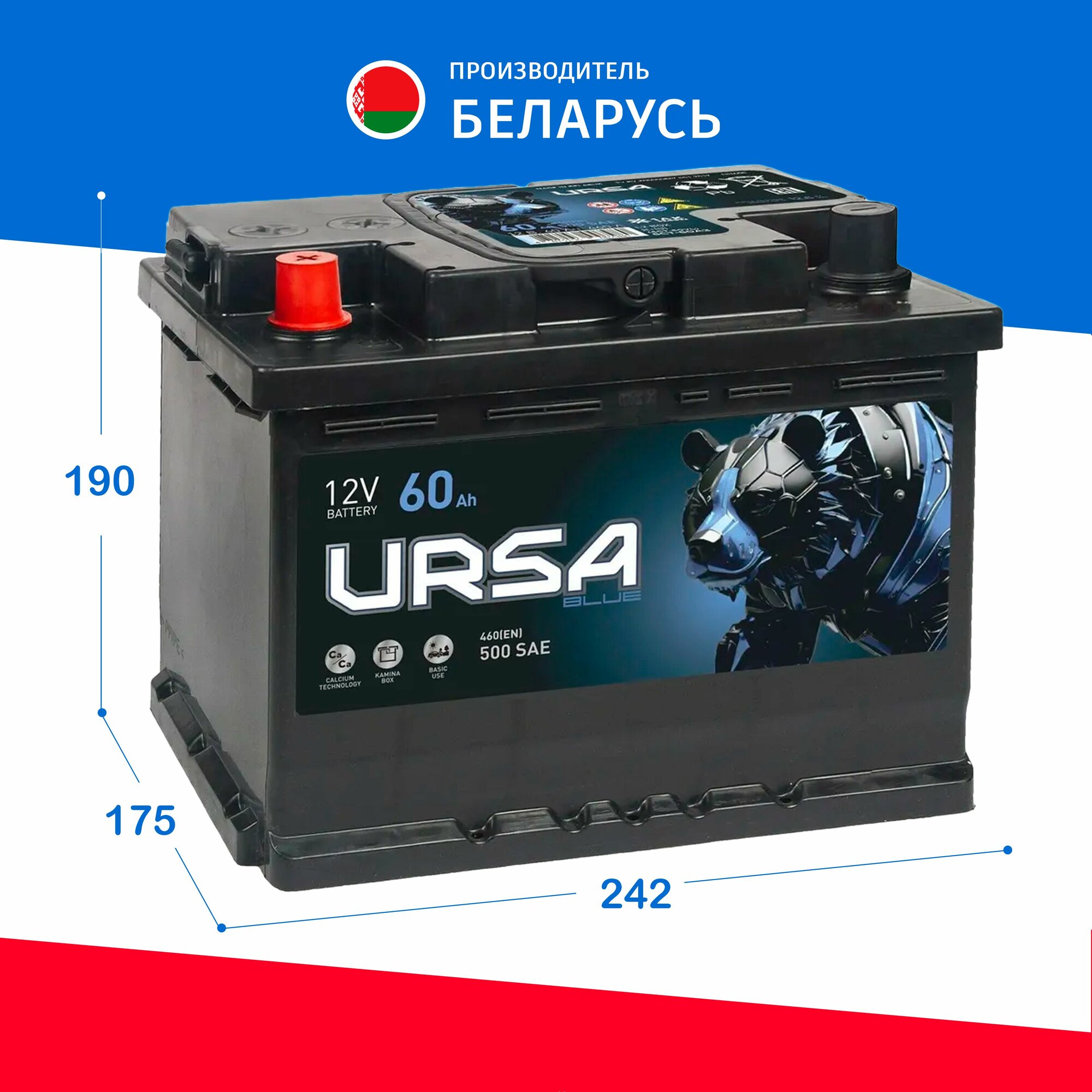 Автомобильный Аккумулятор URSA Blue 60Ah прям. пол. 500А 242x175x190 интересное: