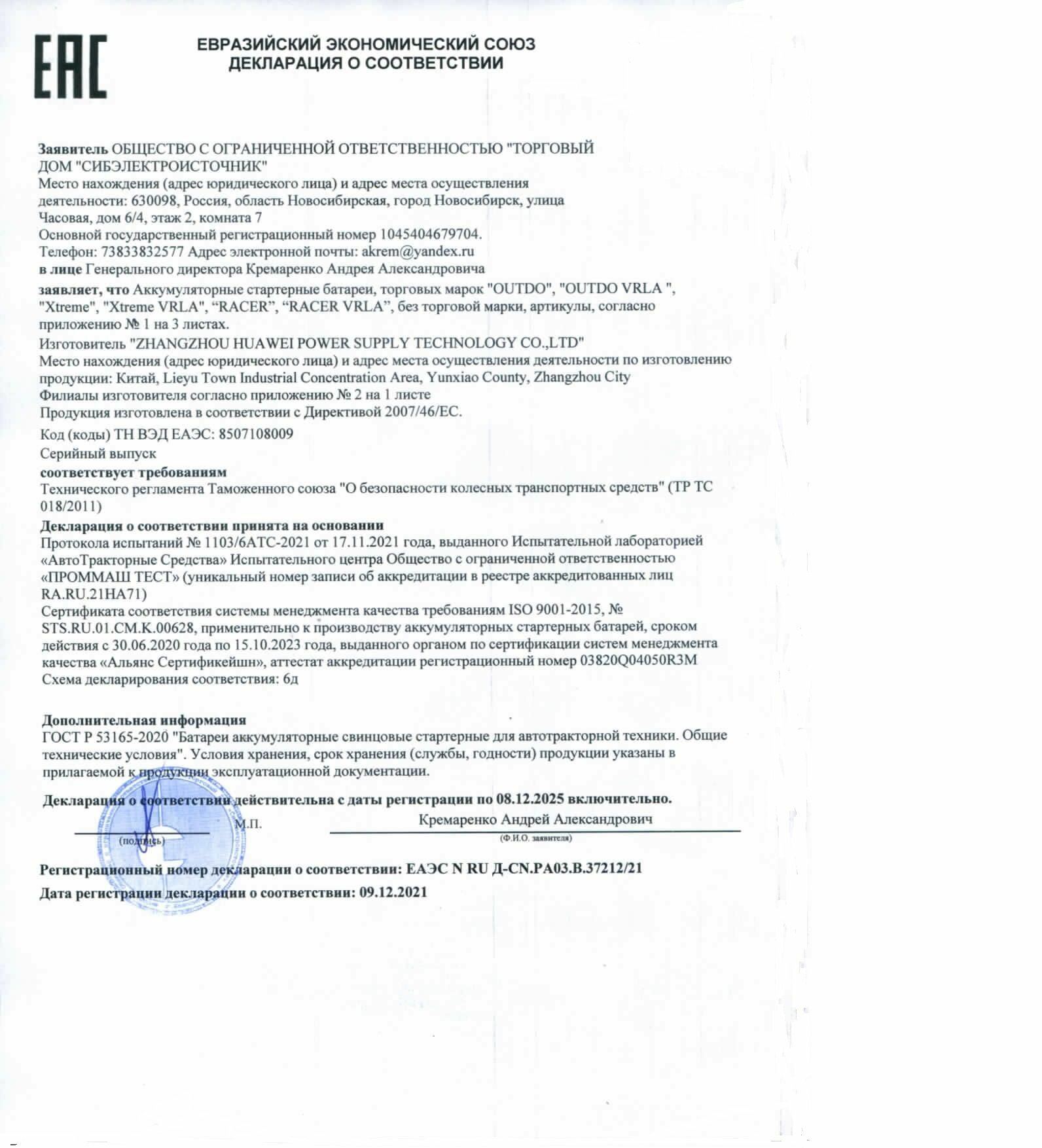 | Тип | Аккумулятор для мототехники |