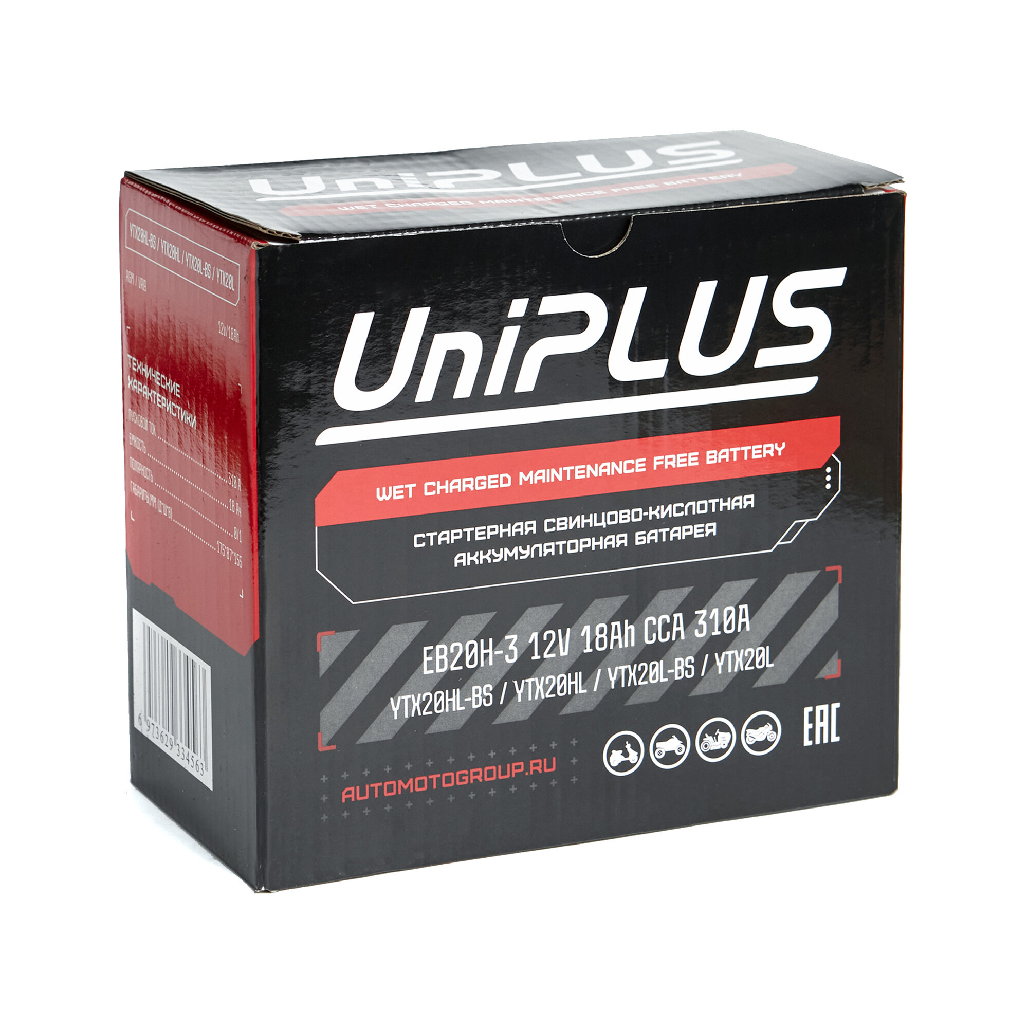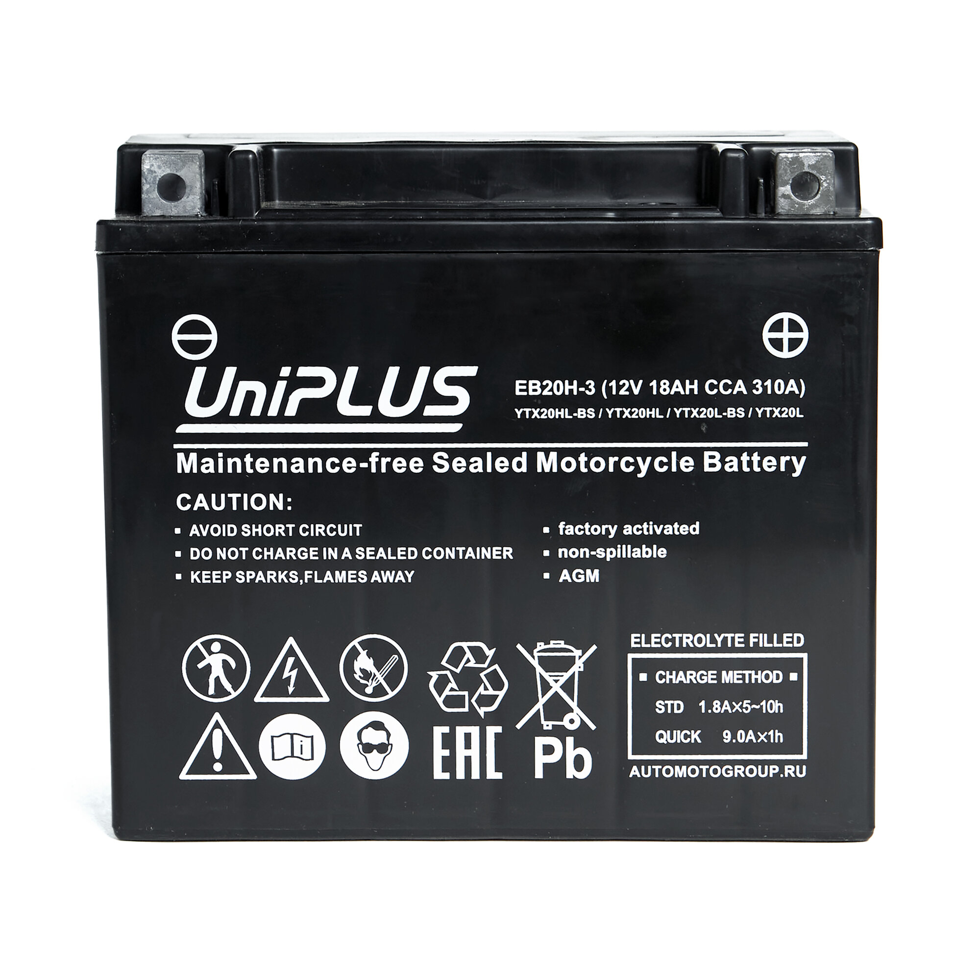 Аккумулятор для мото и гидро техники UniPLUS High Perfomance AGM 18 А/ч 270 А прям. пол. залит/заряжен EB20CH-4 (150х87х161) YTX20СH-BS YTX16-BS