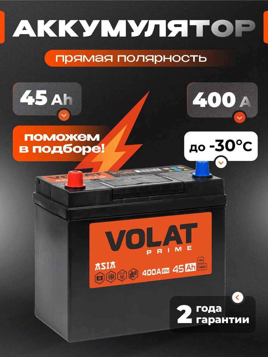 Купить Аккумулятор автомобильный VOLAT Prime Asia (без борта) 45 Ah 400 A прямая полярность 237x127x225
