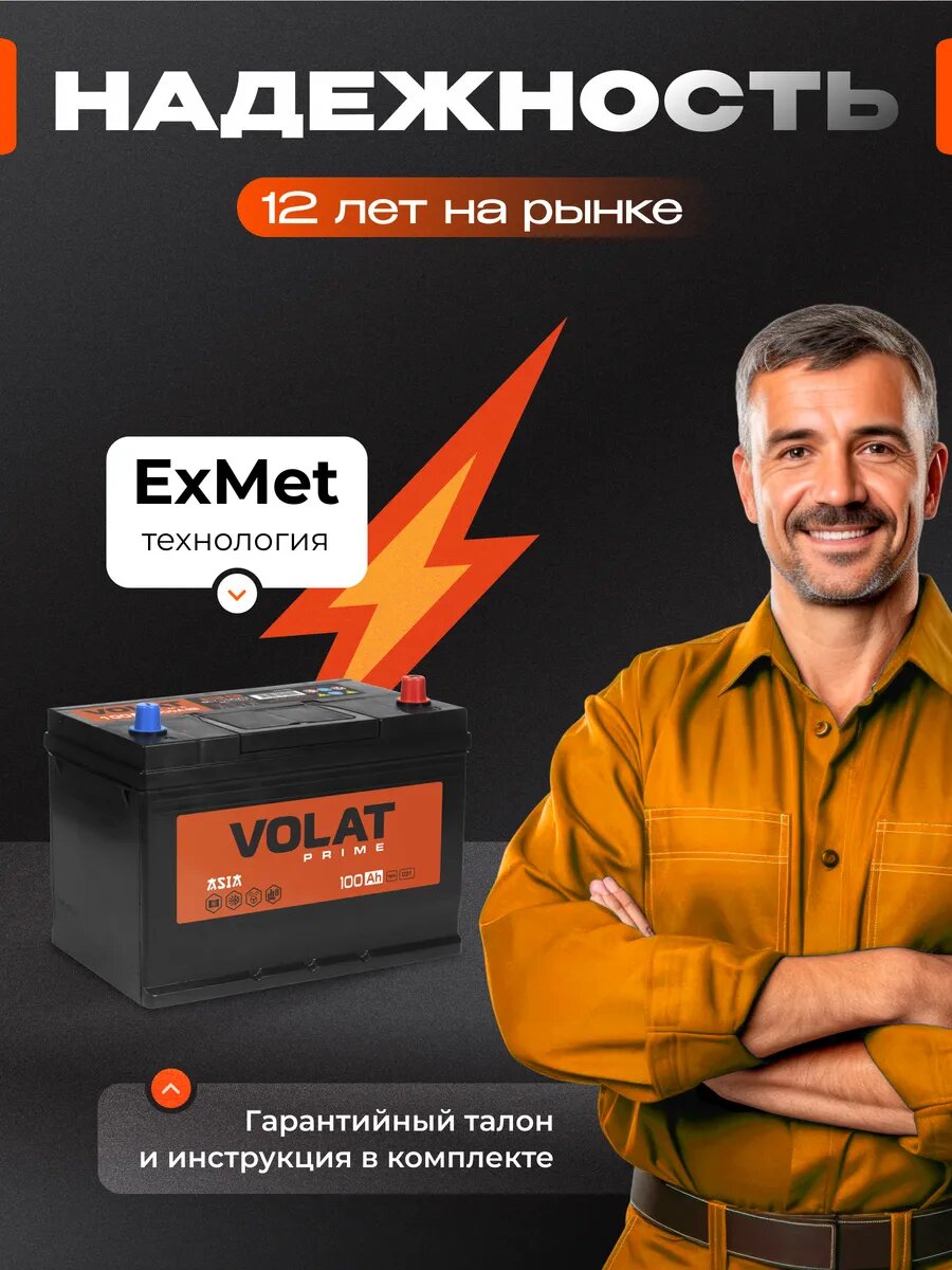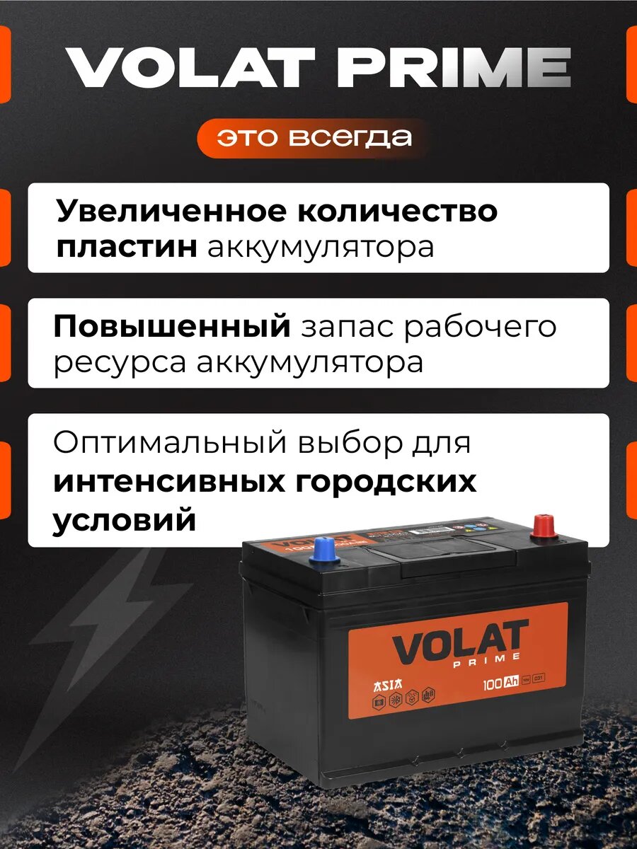 Аккумулятор автомобильный VOLAT Prime Asia 100 Ah 850 A прямая полярность 303x175x225