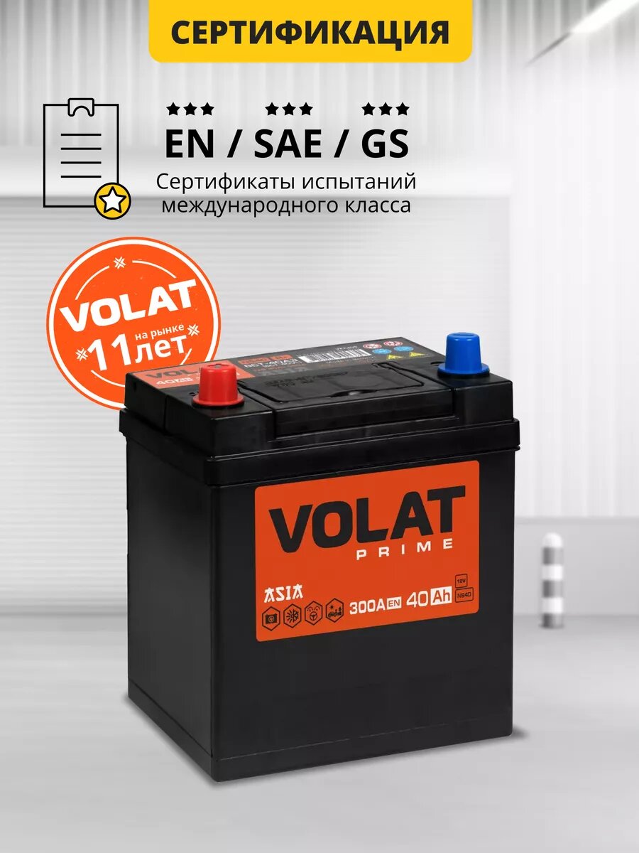 Аккумулятор автомобильный VOLAT Prime Asia 40 Ач (без борта) 300 A прямая полярность 187x127x225 мм интересное: