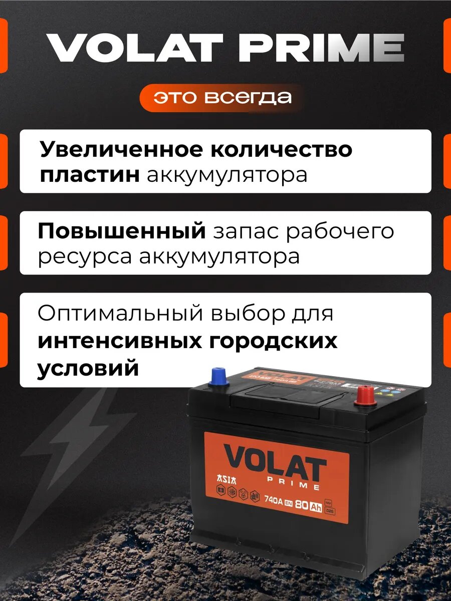 Купить Аккумулятор автомобильный VOLAT Prime Asia 80 Ач 740 А обратная полярность 261x175x225 мм