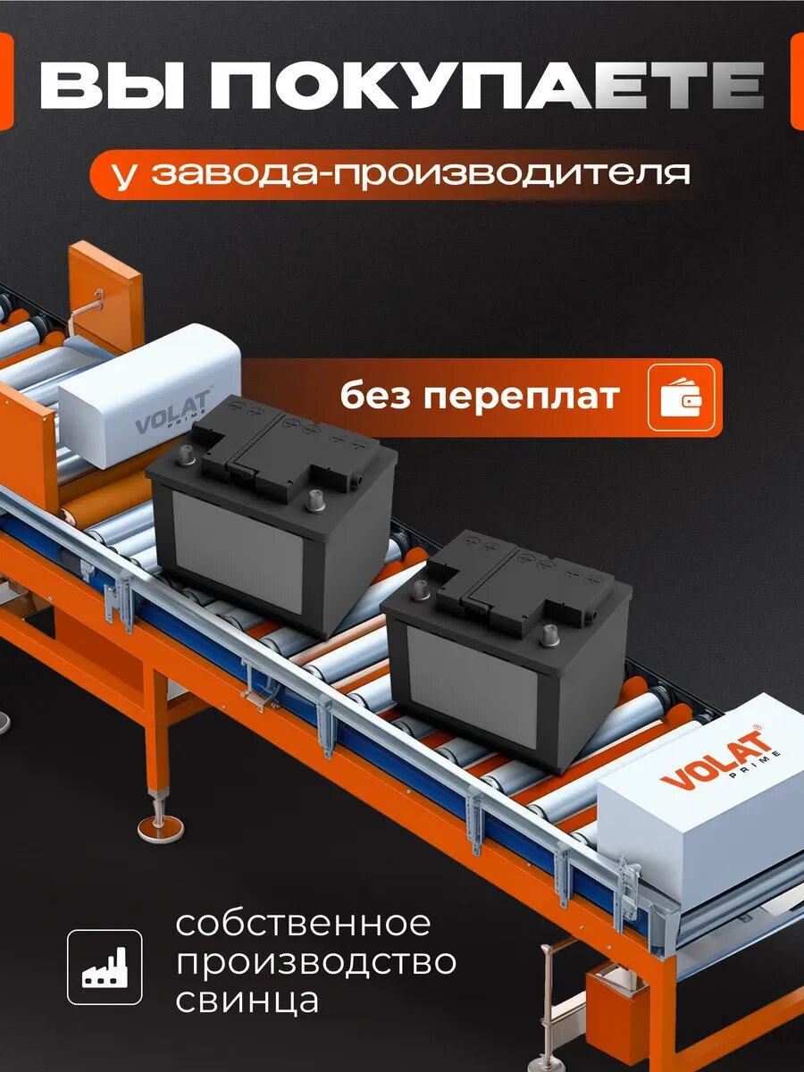 Аккумулятор автомобильный VOLAT Prime Asia (нижний борт) 60 Ah 550 A прямая полярность 230x179x225