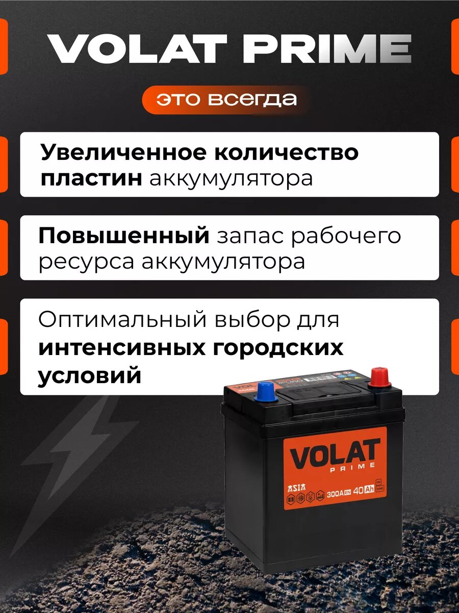 Купить Аккумулятор автомобильный VOLAT Prime Asia 40 Ач (без борта) 300 A обратная полярность 187x127x225 мм