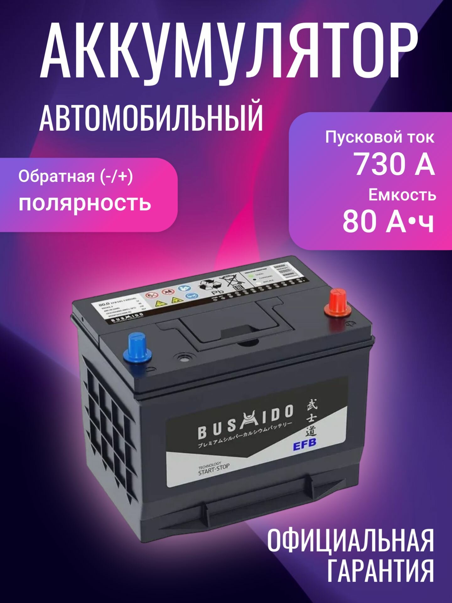 Аккумулятор автомобильный Bushido EFB 130D26L 12В 80Ач 730А, Обратная полярность интересное: