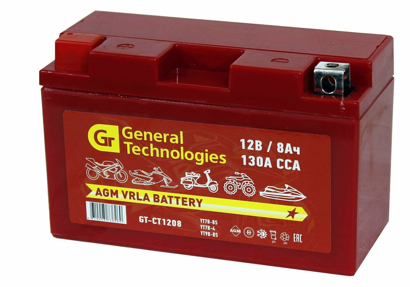 Купить Аккумулятор General Technologies GT 1208 12V/8Ач AGM 150x66x94 (YT7B-BS, YT7B-4, YT9B-BS)