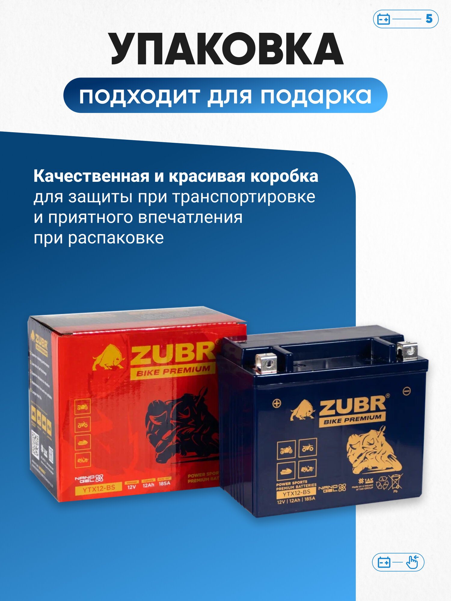 СохранитьАккумулятор для мотоцикла 12v ZUBR BIKE PREMIUM YTX12-BS (NANO-GEL) прямая полярность 12 Ah 185 A гелевый, акб на скутер, мопед, квадроцикл, мотоцикл интересное: