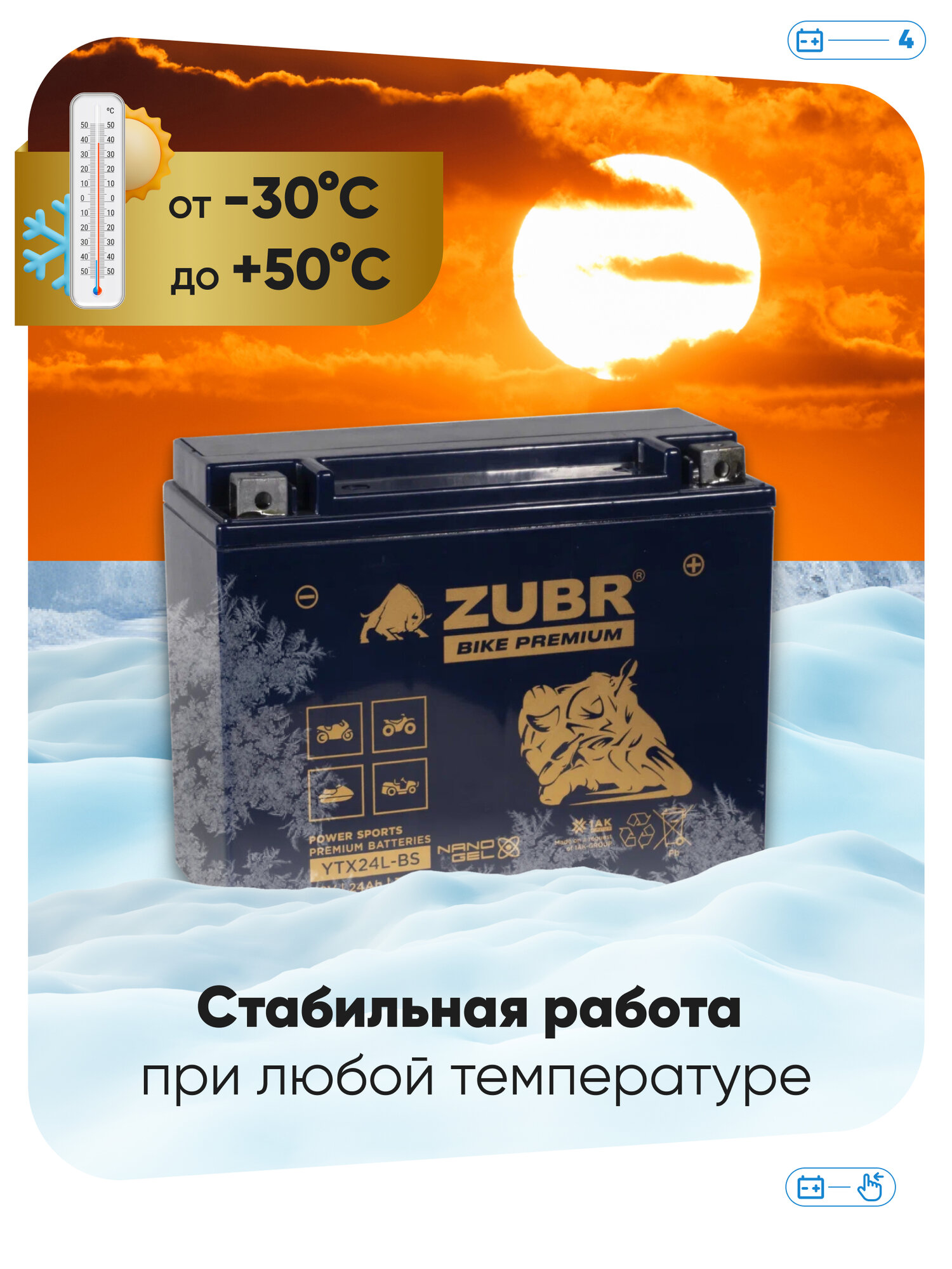 Купить Аккумулятор для мотоцикла 12v 24Ah 335 А ZUBR BIKE PREMIUM гелевый, акб на скутер, мопед, квадроцикл, мотоцикл