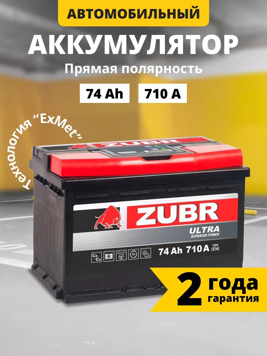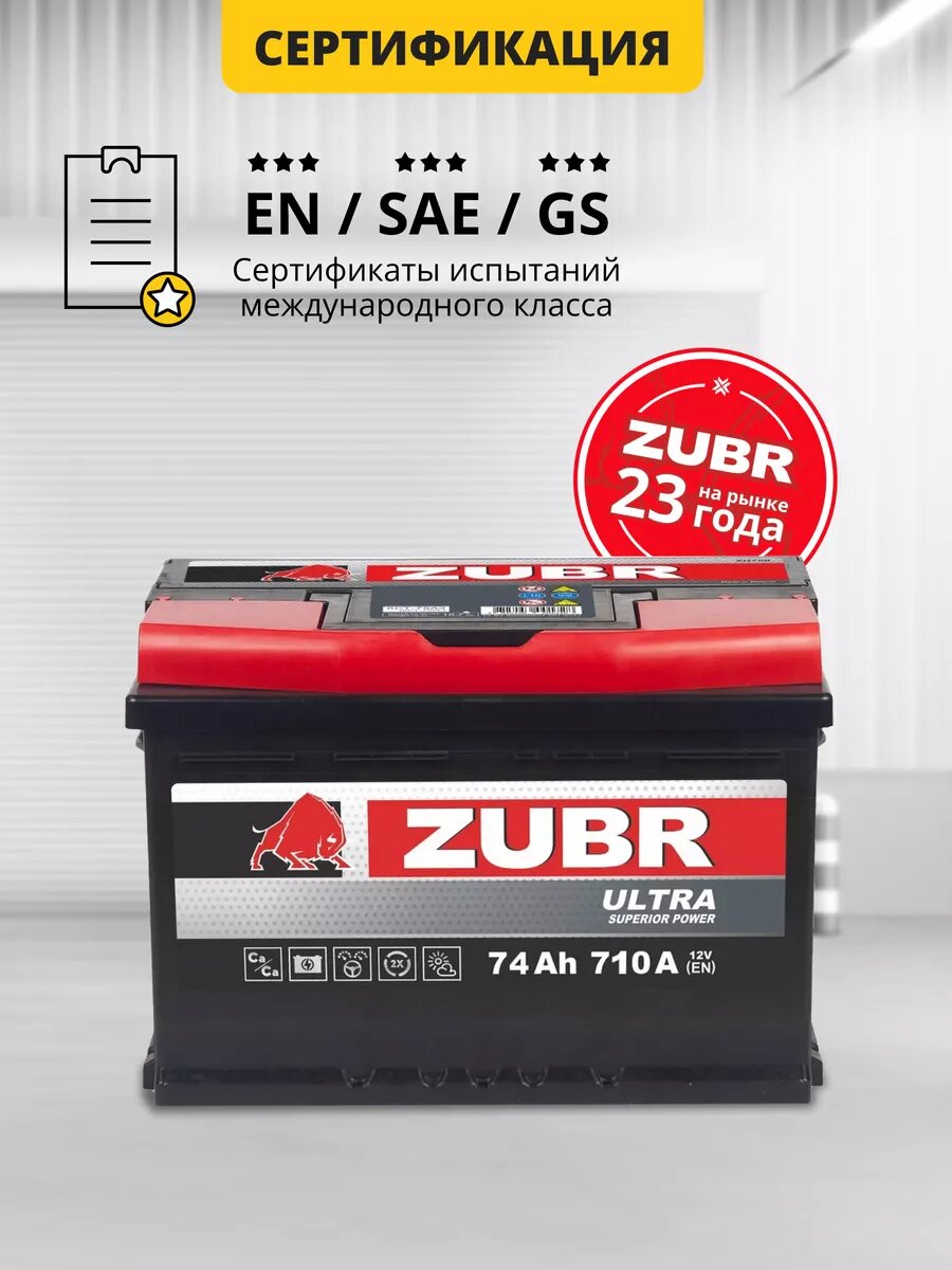 Аккумулятор автомобильный ZUBR Ultra (низкий) 74 Ah 710 A прямая полярность 278x175x175 интересное: