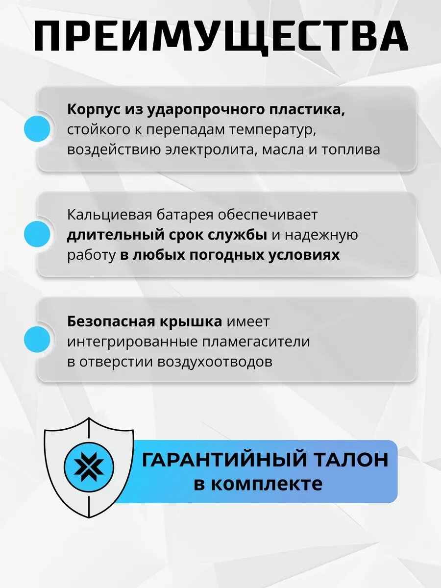 | Технология аккумулятора | кальциевый |