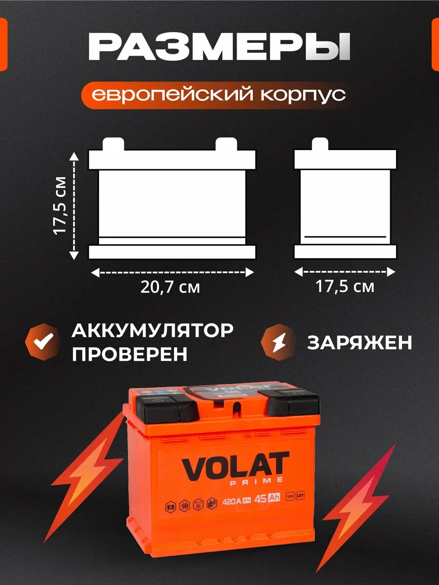 Купить Аккумулятор автомобильный VOLAT Prime 45 Ah 420 A (низкий) обратная полярность 207x175x175