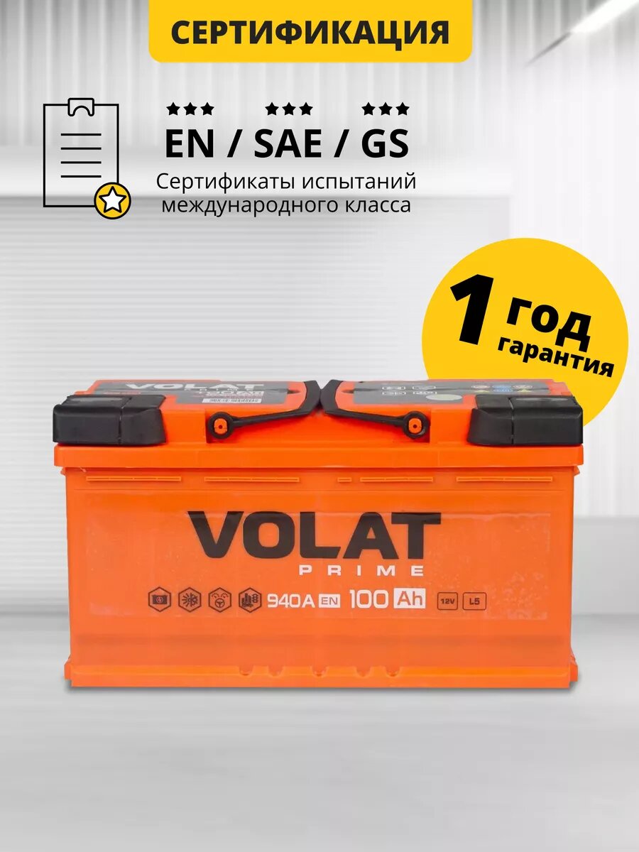 Купить Аккумулятор автомобильный VOLAT Prime 100 Ah 940 A обратная полярность 353x175x190