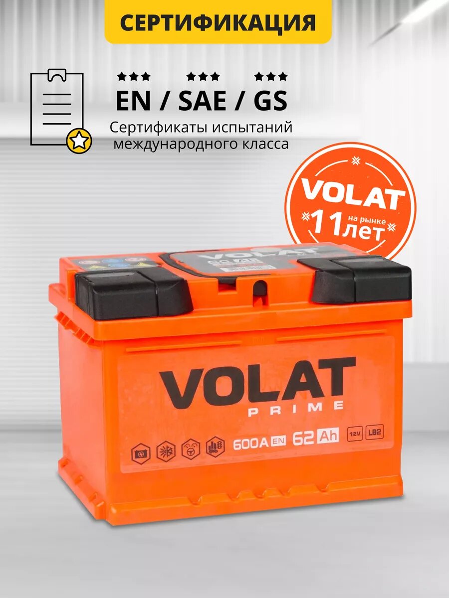 Купить Аккумулятор автомобильный VOLAT Prime (низкий) 62 Ah 600 A обратная полярность 242x175x175