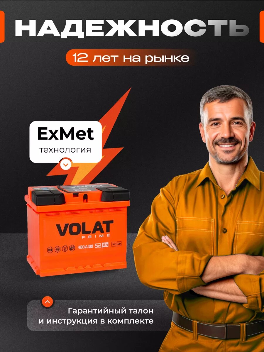 СохранитьАккумулятор автомобильный VOLAT Prime 52 Ач (низкий) 480 A прямая полярность 207x175x175 мм интересное: