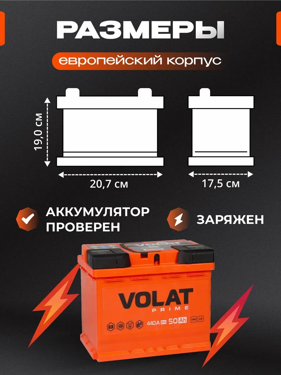 Купить Аккумулятор автомобильный VOLAT Prime 50 Ah 440 A обратная полярность 207x175x190